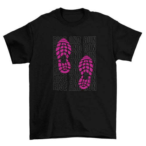 Awesome t-shirt design featuring shoe prints on the floor over the quote "Rise and run".