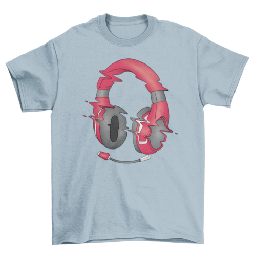 Cool t-shirt design featuring a pair of headphones with a glitch effect.